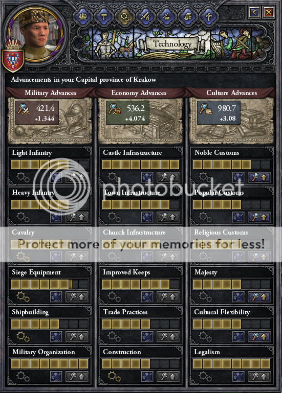 Niepotrzebnie też wydałem mnóstwo kasy na zdobycie koron Niemiec, Bawarii i Pomorza (usunąłem warunek pogaństwa) bo wówczas sądziłem iż tylko w taki sposób te ziemie będą mogły zostać u syna (zapomniałem o przekazywaniu wasali). Zapewne z czasem i tak te korony zniszczę (z pewnością zrobię to z elekcyjną Węgier).