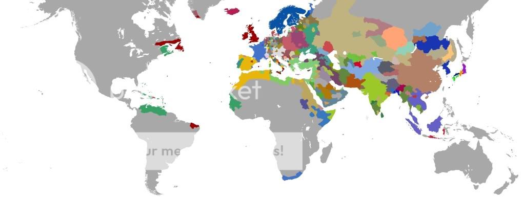 chociaż jak pomyślę to chyba idzie szybciej odkryć Amerykę-muzułmański kraj któy rozpoczyna grę z jedną doktryną i ma koczowniczego sąsiada (żeby byli koloniści), rozwinąć handel do 7 i wtedy wziąć przemarsz wojsk w Maroku a stamtąd ruszyć galerą do Brazylii, do tego potem koczowniczy sąsiad (czyli raczej Timuridzi) zaanektowałby stolicę i zostałyby tylko prowincje zabrane indianom. Może jutro spróbuję, chociaż Grenadą bardzo przyjemnie się gra-taki klimat uciekania z kontynentu przed prześladowaniami ze strony chrześcijańskiej Kastylii :) Czytam sobie historię Grenady i widzę że nonstop kastylijskie wojska ją nękały, może jak usadowię się za możami porządnie to po kilkuset latach zrobię rekonkwistę. A może po prostu przeniosę stolicę, jak to się robi, bo jak kolebkę to wiem, ale stolicy nie mam pojęcia. Przy okazji powiedźcie mi jak robicie te zrzuty z całego świata bo może rozrzucę swe posiadłości po całym świecie (myślę o zajęciu np. Korei)