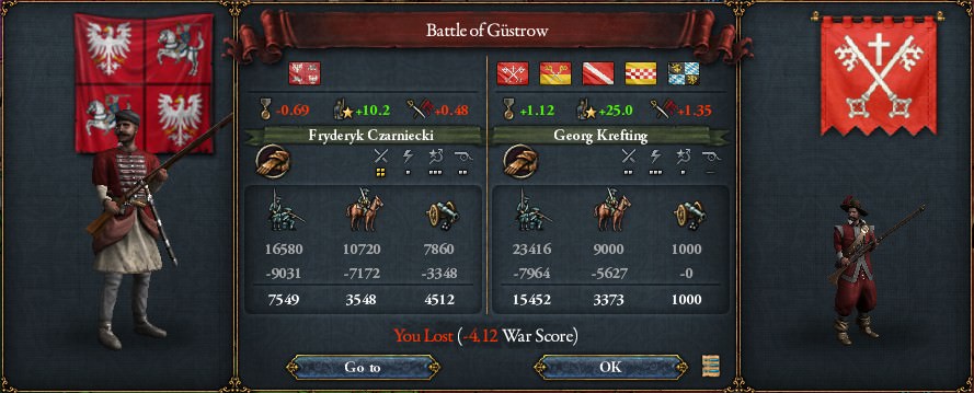 (…) Ruszyła tedy wyprawa przeciw Cesarstwu rokiem pańskim 1655 i przyszedł hetman wielki Fryderyk Czarniecki pod miasto zwane Gustrowiem, tamże hufce książąt Rzeszy napotkał. Zwarły się tedy siły Rzeczpospolitej z Niemcami w starciu krwawem i srogiem, i trwało ono dwa dni i dwie noce. I na nic zdała się husaria, na nic muszkieterzy, na nic puszki, pobit został hetman Czarniecki i cofnąć się musiał ze swoimi ku Rzeczypospolitej, na tarczy na powrót Odrę przekroczywszy.