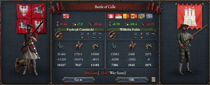 Łońskiego roku wzburzenie wielkie przeciw Jego Królewskiej Mości Augustowi i wszej Rzeczpospolitej powstało na Sejmie Rzeszy, któren odbywał się w mieście biskupim Kolonii. Zawarli tedy książęta pakta sekretne i aliansa, by rokiem Pańskim 1659, rozejm uprzednio wypowiedziawszy, na Rzeczpospolitą zdradziecko napaść. Ruszył tedy jegomość hetman Czarniecki, a wiódł ze sobą piechotę wybraniecką w sile dziesięciu tysięcy, pięć tysięcy mołojców, takoż pięć tysięcy piechoty cudzoziemskiego autoramenta, cztery tysiące husarii, trzy tysiące lisowczyków, takoż jedenaście tysięcy pancernych tudzież litewskich petyhorców. Przyszło tedy do potrzeby podle jeziora zwanego Miałkińskim, tamże pobici zostali Niemce pod jenerałem Knyphausenem. Ruszywszy zasię w pościg za zbiegającymi pludrakami dotarł hetman pod Salzwedel, w dobrach hrabiego Altmarku, tamże kolejną wiktorię odniósł. Zali zbyt dufny był jegomość Czarniecki w siły swe, zapuściwszy się tedy aż w ziemie saksońskie, siłę wielką pludraków napotkawszy, pogromion został u miasta Celle.