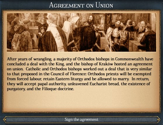 W wyniku Unii Brzeskiej polska cerkiew prawosławna została połączona z kościołem łacińskim, zaś prawosławni biskupi uznali zwierzchność papieża.​