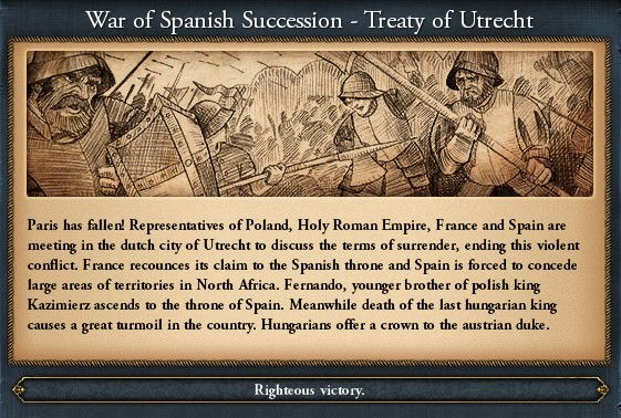 Europa dzieli się na dwa wrogie obozy. Z jednej strony Francuzi popierani przez część książąt Rzeszy i króla Węgier, obawiających się wzrostu potęgi Rzeczpospolitej. Z drugiej Polska i Hiszpania połączone osobą monarchy, wkrótce do sojuszu przystąpią również Brytyjczycy zaniepokojeni agresywną polityką Paryża.
