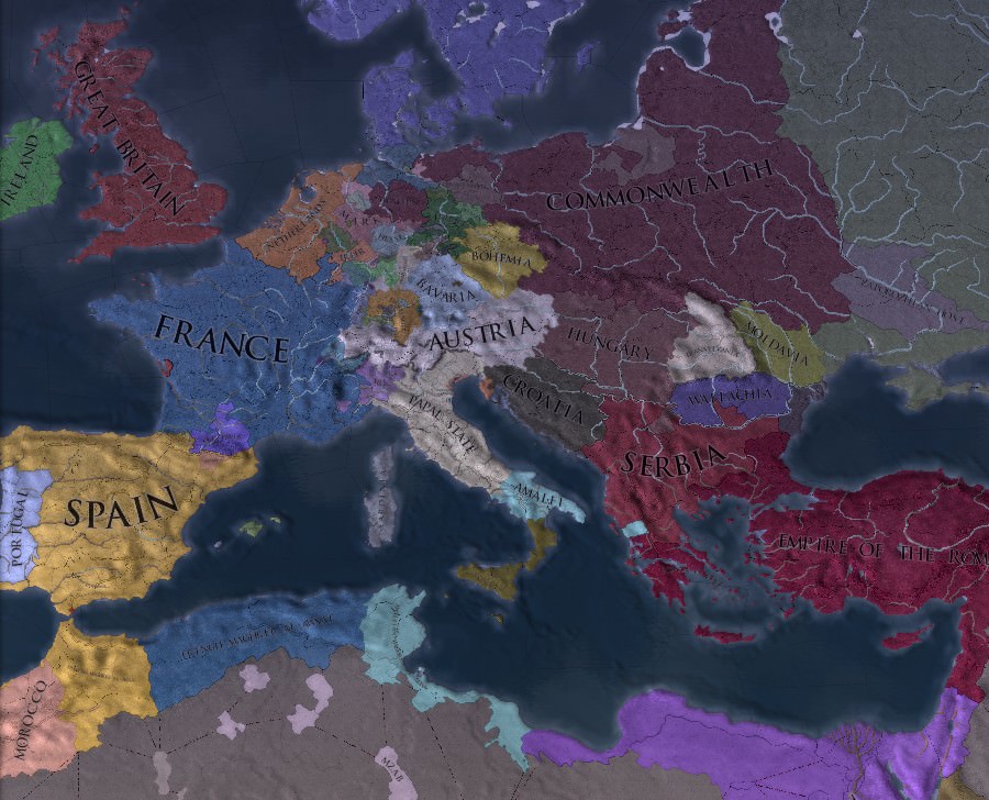 To jest relikt kupieckiej republiki Amalfi ze startu Old Gods w CK2. Gdzieś W XV wieku przekształcili się oni w królestwo i dostali hiszpańską dynastię na tron, ale pozostali przy prawosławiu. Obecnie są w unii z Sycylią i dałem im możliwość stworzenia Królestwa Obojga Sycylii.
