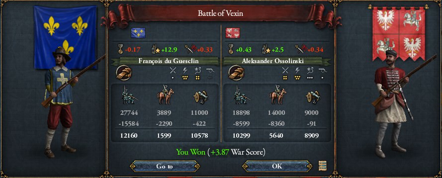 W przeddzień wojny umiera król Kazimierz VII, prowadzący swoje wojska ku pospolitemu ruszeniu zbierającemu się na Kujawach. Wojna uniemożliwia przeprowadzenie powszechnej elekcji, wobec powagi sytuacji senatorowie zgadzają się na przekazanie korony bratu Kazimierza Augustowi.