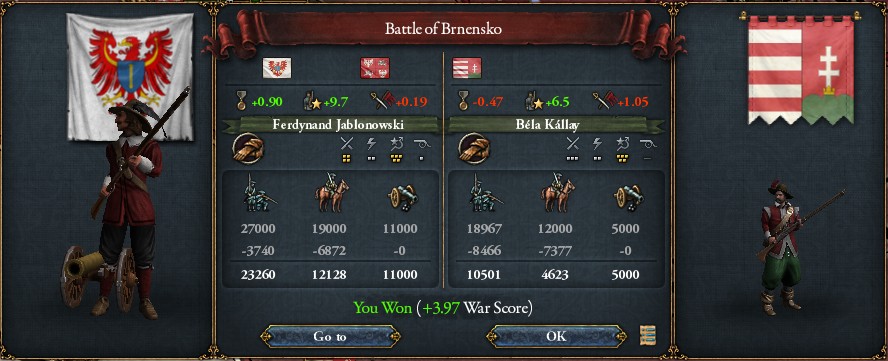 Siła wszelakoż pozostała Italyczków i Węgrów, ci zaś położenie swe trudne dostrzegłszy, ku miastu przebijać się poczęli i przez rzekę przeprawiać. Wielu potonęło owego dnia w wodach Cisy i Borsodu, zali część zbiec zdołała i po kraju rozpierzchła się. Po bitwie dwie setki chorągwi oddano mi, w kościele zaś w Tokaju, Te Deum przykazałem grać.