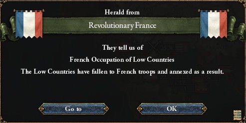 Mimo klęsk floty francuskiej na Kanale La Manche, do walnej bitwy między Francuzami a Holendrami doszło pod Waregem we Flandrii, gdzie generał Michel Ancre odniósł decydujące zwycięstwo, pieczętujące los Niderlandów. Terytoria utracone przez Francję w wyniku Wojny o Sukcesję Hiszpańską zostały włączone bezpośrednio do Republiki, zaś z pozostałej części Niderlandów utworzona została marionetkowa Republika Batawska. Pod Kolonią doszło do walnej rozprawy z siłami cesarskimi, gdzie Armand Plessis zadał klęskę Niemcom dowodzonym przez generała Egona von Paderborn. Porażka poniesiona przez wojska Cesarskie pod Kassel, połączona z postępami rewolucyjnego wojska w Austrii ostatecznie zakończyła udział Rzeszy w wojnie II Koalicji, zaś na teranie italskich posiadłości austriackich Welfów utworzona została satelicka Republika Italii. Brytyjczycy czterokrotnie podejmowali próbę desantu, poniósłszy zaś klęski pod Calais, Brugią, Rouen oraz Vannes, usiłowali otworzyć nowy front w Italii, tam jednakże zostali rozbici przez młodego i zdolnego generała Napoleona Bonaparte w starciu pod Luccą. II Koalicja została pokonana, Francja triumfowała.​