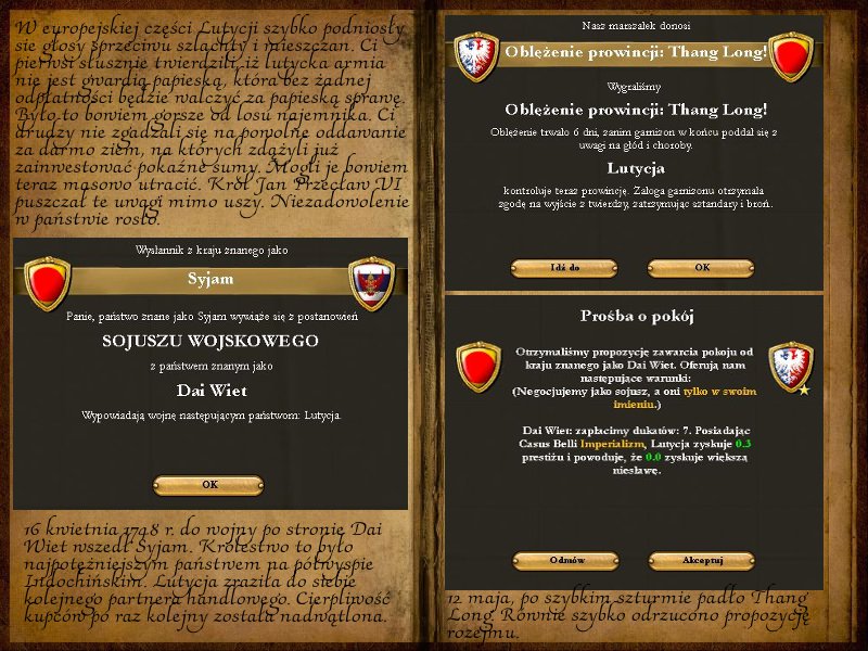 Btw, pisałeś o "zapaści", a przecież Lutycja po zdobyczach w azji powinna czerpać wielkimi garściami z tamtejszych bogactw, więc czemu taka zapaść miała by nastać?