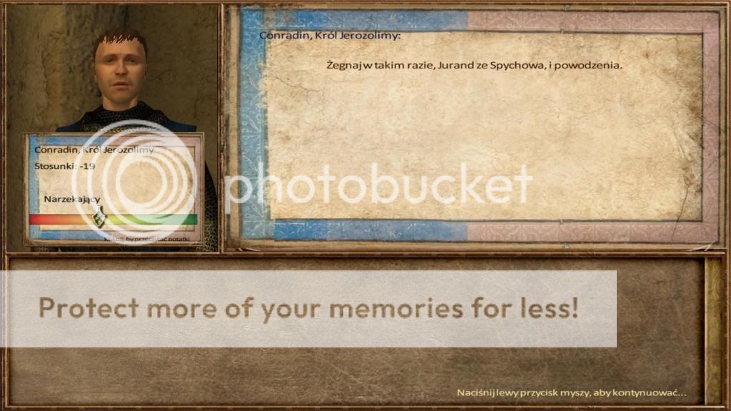 Pierwszą częścią intrygi było upokorzenie Państwa Krzyżowców. Na polu bitwy nie mogłem tego zrobić. Wojna na dwa fronty nie jest dobrym pomysłem. Innym sposobem byłby ślub ze szlachcianką z tego państwa. W czasie uczty, próbowałem zaimponować Lady Constance, siostra Baldwina Ibelina - pana Cypru. Czy mi się udało, czas pokaże. Następnie musiałem wypowiedzieć przysięgę królowi Jerozolimy. Nie będę opisywał tej rozmowy, nie różniła się zbytnio od poprzednich.