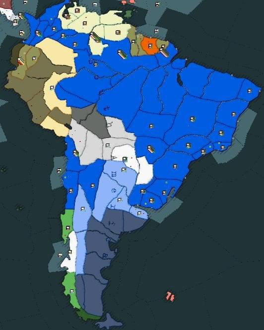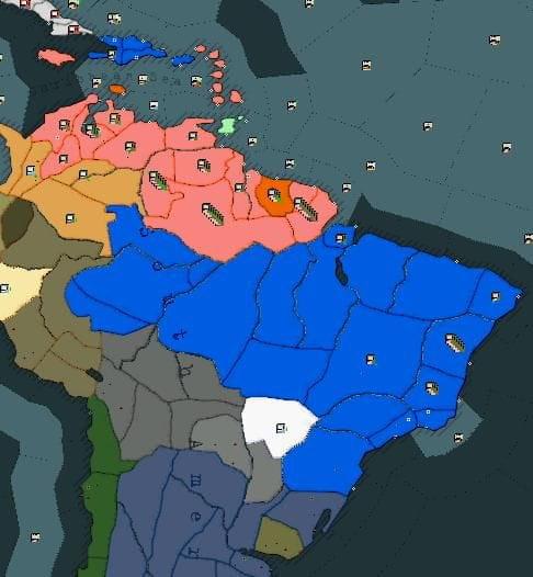 Front amerykański: II połowa lutego – oddziały alianckie kontynuują marsz na Caracas, tak samo jak Amerykanie, którzy po wylądowaniu na Marajo kierują się w stronę wsch. Brazylii.