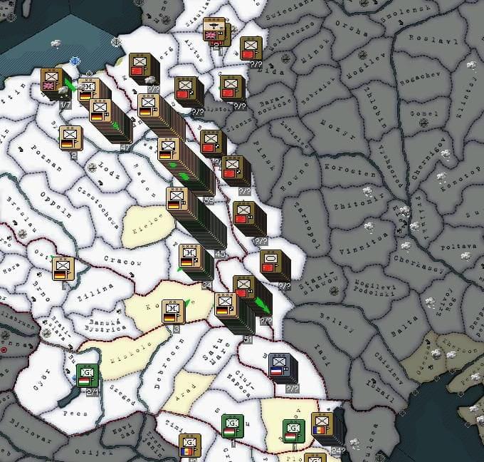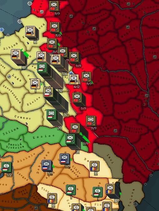 Front wschodni: II połowa stycznia – na froncie w Polsce i na Rusi Zakarpackiej nadal spokój związany z trudnymi warunkami atmosferycznymi, ale tego samego nie można powiedzieć o odcinku południowym. Tutaj Sowieci przebili się przez jugosłowiańsko-rumuńską obronę co grozi upadkiem jednego z państw Konferencji Bałkańskiej. Stanowisko Bułgarii w tej sprawie może stać się wkrótce kluczowe… 16.I. – nalot aliancki na sowieckie pozycje pod Baranowiczami. 17.I. – ofensywa sowiecka w kierunku na Konstancę, niepokój w Bukareszcie. 19.I. – naloty lotnictwa brytyjskiego na składy amunicji w Białymstoku; Rumuni odnoszą zwycięstwo blokując armie wroga pod Braiłą. 20.I. – do Gdańska docierają kolejne posiłki alianckie, tym razem są to 3 dywizje piechoty, 2 australijskie i 1 brytyjska; Sowieci tego dnia zajmują Konstancę, wybitnie utrudniając dalszą obronę Rumunii i dając przyczynę do wystąpienia przeciw Rumunom - Bułgarii. 21.I. – nalot aliancki na Kowno. 22-25.I. – kilka nalotów bombowych na przedmieścia Wilna. 25.I. – kolejne wzmocnienie na froncie w postaci holenderskiej dywizji milicji gen. Bouteta przybyłej do portu w Gdyni. 26-27.I. – brytyjskie naloty bombowe na Olitę i Rygę. 28., 31.I. – alianckie naloty na strategiczne obiekty w Dyneburgu i pod Jełgawą na Łotwie. 30.I. – Sowieci rozwijają ofensywę lądową w stronę Bacau…