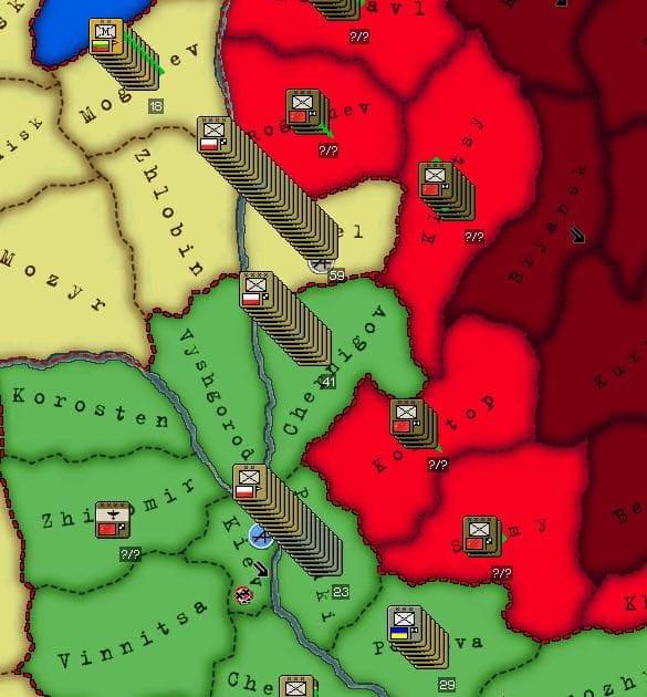 Front wschodni: I połowa lutego – wojska sprzymierzonych nadal utrzymują inicjatywę strategiczną i korzystając ze znacznego osłabienia wrogich sił kontynuują serię wspaniałych zwycięstw. Kolejne dwa duże miasta dostają się pod kontrolę aliantów, Charków i Rostów nad Donem. Nie należy także zapomnieć o zajęciu okręgu moskiewskiego wraz z ruinami dawnej stolicy ZSRR. 1.II. – 19 dywizji sprzymierzonych pod dowództwem gen. Simpsona opanowuje teren wokół miasta Wytegra na szlaku do Archangielska, zamknięcie licznych sowieckich dywizji w Karelii coraz bliższe. 2.II. – okazuje się, że Sowieci korzystają już także z posiłków turkiestańskich na froncie wschodnim, czego dowodem niech będzie potyczka z ową dywizją pod Klincami. Feldm. von Bittenfeld wyzwala tego dnia ukraiński Biełgorod. 3.II. – Kolejne zwycięstwo na trasie marszu pod Klincy wygrywają alianci, tym razem jak niepyszny odchodzi z placu boju korpus piechoty marsz. Koszewoja. 52 dywizje marsz. Wavella atakują w tym samym czasie pozycje sowieckie pod Kurskiem, gdzie jest linia umocnień. Konotop zostaje wyzwolony przez aliantów. Walki z korpusem piechoty gen. Odincowa pod Klincami trwają od popołudnia do wieczora. 4-5.II. – zacięte walki pod Klincami. 6.II. – bitwa pod Czerepowcem, gdzie triumf odnosi 12 brytyjskich dywizji; karkołomny atak na pozycje sowieckie pod Briańskiem podejmują 23 dywizje alianckie pod dowództwem marsz. Kallnera. 7.II. – dzień upływa na starciach pod Briańskiem i Możajskiem; Brytyjczykom nie udaje się desant pod Murmańskiem, który miał przyśpieszyć stworzenie kotła w Karelii. Tego dnia oddziały dowodzone przez marsz. Sikorskiego wyzwalają Charków. 8.II. – dzień po wyzwoleniu Charkowa, Sikorski uderza na osłabione siły Armii Czerwonej pod Biłowodzkiem, natomiast daleko na Północy, brytyjski korpus pancerny gen. Beloe doprowadza do zajęcia Pietrozawodzka. 9.II. – trwają potyczki pod Briańskiem; węgiersko-polskie natarcie na Rostów nad Donem lada chwila może przynieść wyzwolenie tego miasta; wojska rumuńskie zajmują Bielce i wyłapując ostatnich sowieckich maruderów w Mołdawii. 10.II. – amerykański gen. Stilwell pokonał Sowietów pod Kaługą, ale i wojska Armii Czerwonej odnoszą swój mały sukces, zmuszając korpus pancerny gen. Beloe do wycofania się z Pietrozawodzka. Brytyjskie korpusy piechoty pod dowództwem gen. Hardinga i Stopforda zdobywają kontrolę nad okręgiem moskiewskim, przejmując też kontrolę nad ruinami Moskwy. 11.II. – 121 dywizji alianckich znajduje się już pod Klincami, przygotowując się do wspomożenia ataków pod Briańskiem bądź w kierunku Nogińska czy Tuły. Cztery amerykańskie dywizje piechoty zdobywają kontrolę nad Czerepowcem i całością Zbiornika Rybińskiego k/Moskwy. 12.II. – zacięte walki pod Kaługą. 13.II. – wyzwolenie Rostowa przez wojska węgierskie. 14.II. – 13 dywizji sprzymierzonych blokuje Sowietów pod Pietrozawodzkiem, przeszkadzając w przejęciu tego terenu przez komunistów. 15.II. – 25 dywizji sprzymierzonych zdobywa kontrolę nad Możajskiem, wyprowadzając także natarcie na Nogińsk, gdzie również strona sowiecka zmuszona jest do odwrotu.