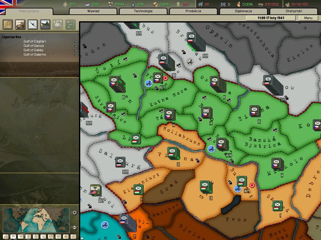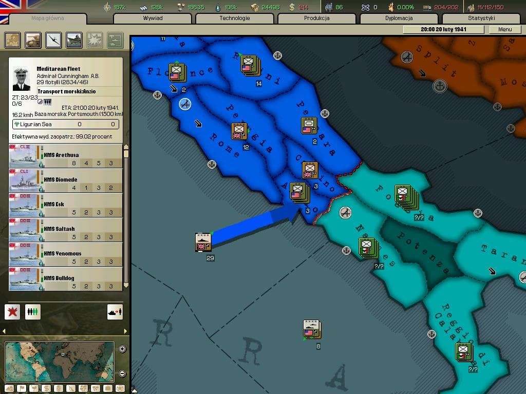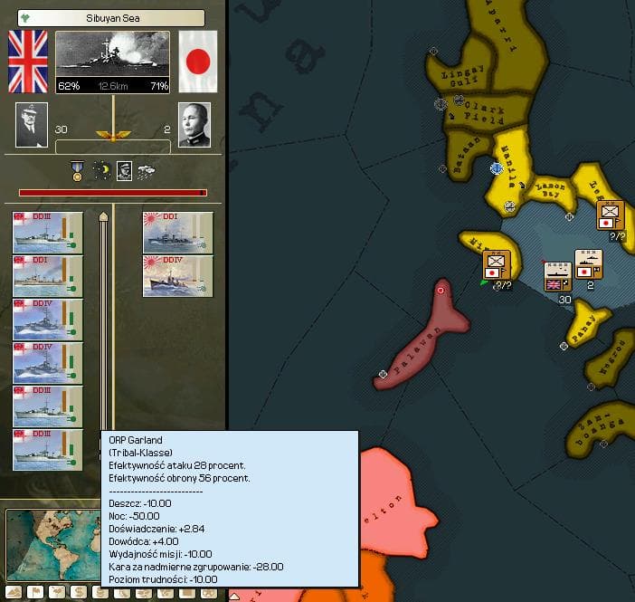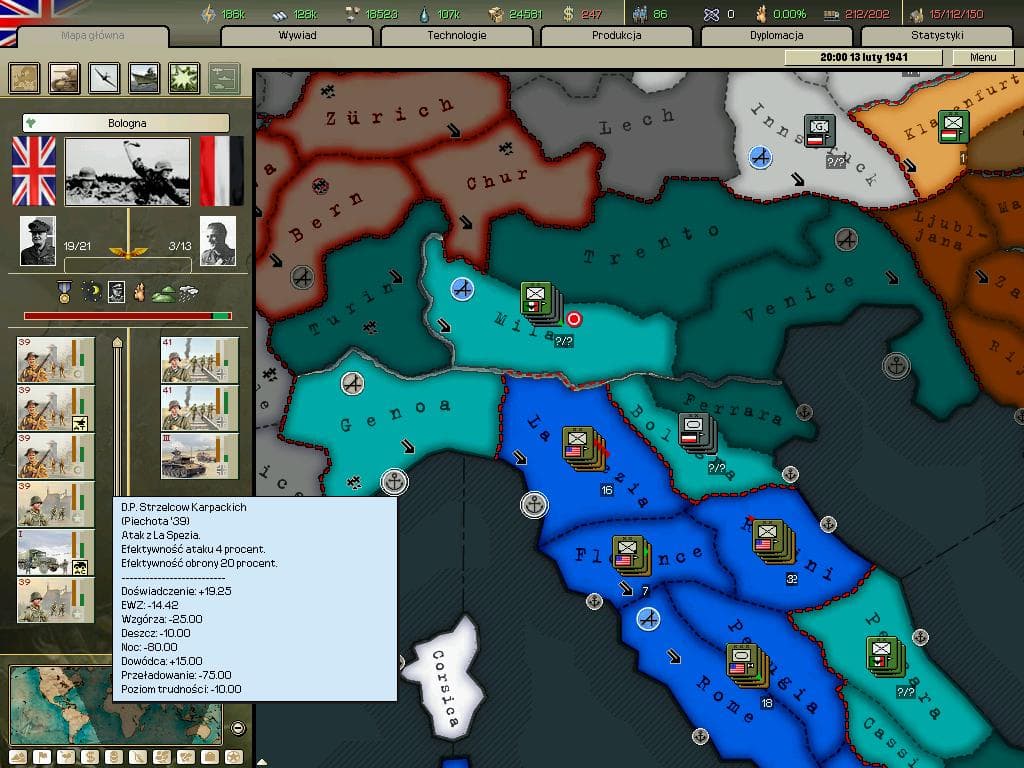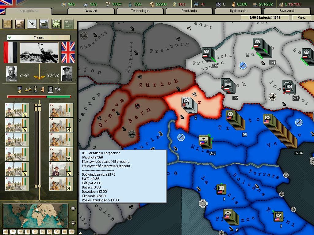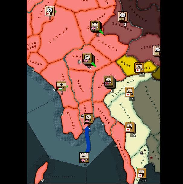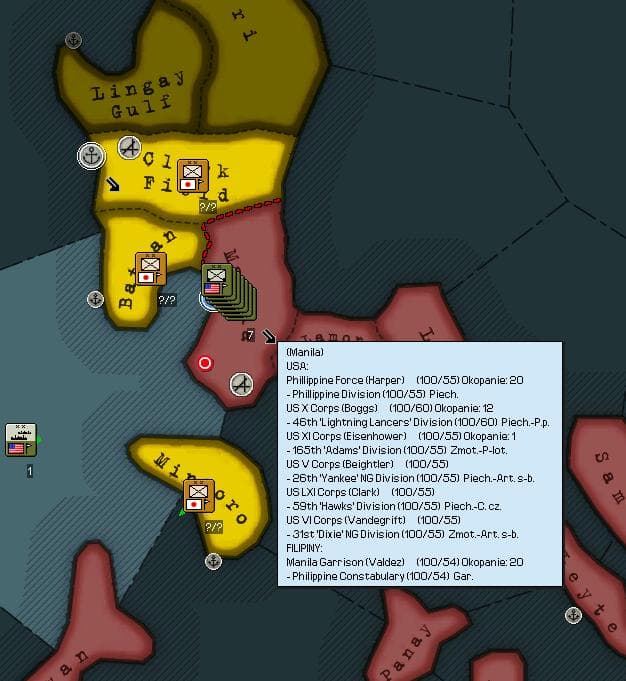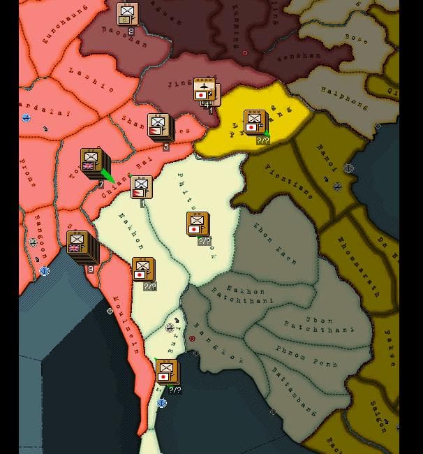 -wojna chińsko-japońska – tutaj nie można zaobserwować za wiele inwencji na froncie. Japończycy zapewne część dywizji wciąż kierują na wojnę z Sowietami, a inne jednostki pomagają zdobywać kolejne wyspy Pacyfiku.