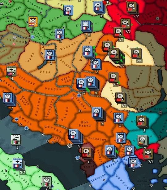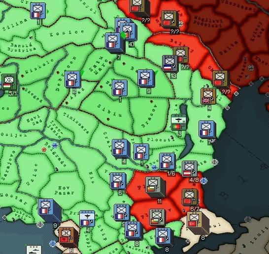 Na froncie bałkańskim i na Słowacji istnieją jedynie dwa ogniska konfliktu, niezaleczone jeszcze starcia o Nisz w Serbii oraz powtarzające się sowieckie ofensywy na Bańską Bystrzycę. O ile o te drugie miasto walki toczą się od czasu do czasu, jak chociażby 6 czy 9 stycznia, zakończone odparciem wojsk wroga, o tyle w przypadku Niszu, zajętego przez wojska brytyjskie pod dowództwem marsz. Connora (7.I.), przerywa to kilkumiesięczną batalię o zdobycie kontroli nad tym miastem. Teraz jeśli do Niszu dotrze pozostałe kilkanaście dywizji sprzymierzonych, spowoduje to zapewne przeprowadzenie ofensywy na pogranicze rumuńsko-bułgarskie, skutkujące przejęciem prowincji naddunajskich, a przez to utworzeniem doskonałych pozycji wyjściowych do ataku na Bukareszt. Zanim to jednak nastąpi, należy pamiętać, że wróg nadal posiada wiele dywizji pancernych, dzięki którym może przesądzić o wyniku niejednego starcia.